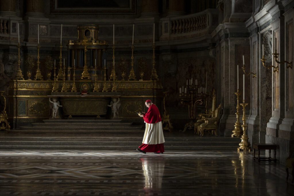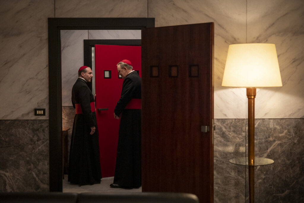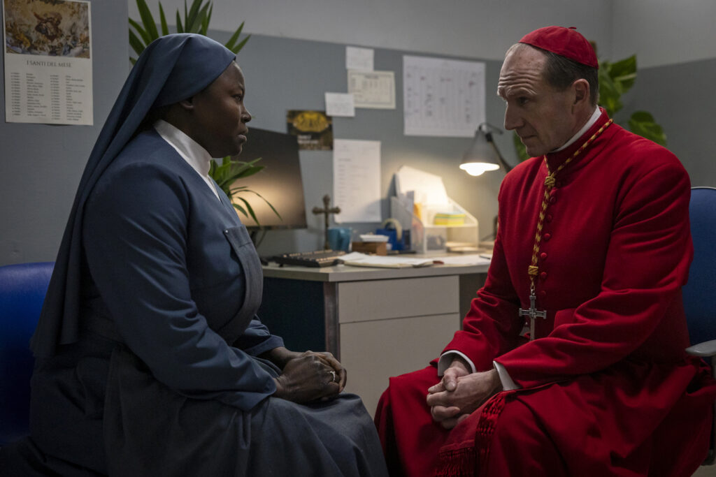La interpretación de Ralph Fiennes es portentosa. Pocos actores de hoy tienen su talento para aunar determinación y delicadeza ante situaciones críticas. El amor de Lawrence por el papa fallecido, sus dudas de orden práctico y religioso, su predisposición a escuchar sin dejarse manipular, son plasmados por Fiennes con un dominio milimétrico de la elocuencia facial y gestual. Vale mucho la pena atender a los ojos y las inflexiones vocales del actor británico, pero también a sus juegos de manos con el crucifijo que cuelga del cuello de su personaje, entre otros detalles. Fiennes es portavoz además de algunos apuntes clave en torno a las certidumbres establecidas como los mayores enemigos de la tolerancia y la reivindicación de la fe como “entidad viva precisamente porque camina cogida de la mano con la duda”.
