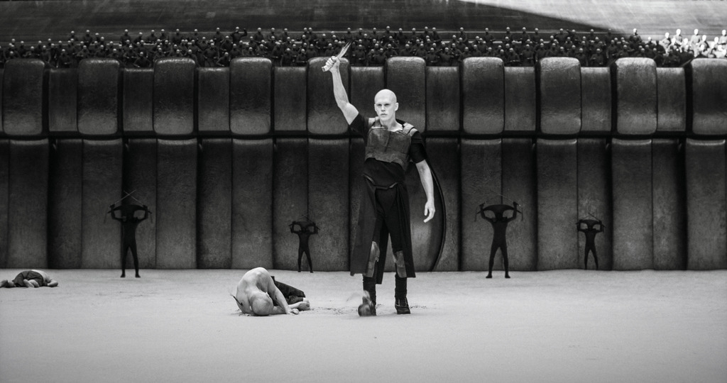 Pero, al mismo tiempo, la película nos demuestra con su tosquedad narrativa, su incapacidad para filmar una pelea o una batalla en condiciones, decisiones estéticas tan gratuitas como el circunstancial blanco y negro, la ineficacia de sus diálogos para dar cuenta de la evolución y transformación de los personajes, su empeño por rematar cada escena con potencial para la grandeza en un puñado de planos, con esa extraña vaciedad que recorre en definitiva el metraje de principio a fin, que Denis Villeneuve, como Chani, no cree. Es un gran escenógrafo; tiene un sentido innato para otorgar a un muro, a un momento de silencio, dimensiones dramáticas o políticas; pero no puede o no quiere hacer que esa dramaturgia devenga ficción, imagen en movimiento en el sentido más amplio del término, porque el arrebato ha sido juzgado, sentenciado y ejecutado por el pensamiento.