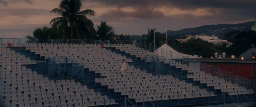 En Pacifiction, Albert Serra articula esa tensión entre el consenso y el abismo vía la alternancia de dos estratos de la imagen. El primero, representativo; un teatro de marionetas que nos muestra a De Roller engañando y engañándose a sí mismo en charlas y reuniones insustanciales con políticos, activistas, hombres de negocios y entertainers indígenas. El segundo estrato, inconexo, sigue al comisionado del estado francés en Tahití mientras se adentra con paso titubeante en interiores y exteriores ominosos.
