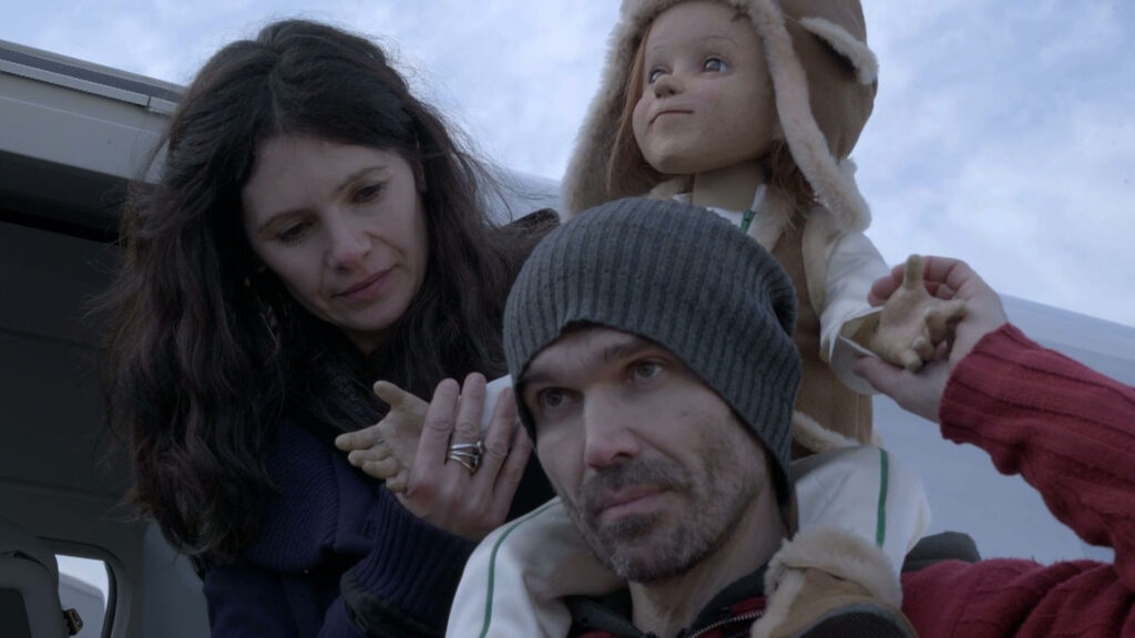 Una mujer de pelo negro y largo y rizado se sienta en el suelo. Sostiene a una niña acurrucada entre sus brazos, con la cabeza contra su pecho. Intenta besarla en la mejilla, pero la niña gira la cabeza. Lo intenta de nuevo, y la malhumorada chiquilla vuelve a apartarse. Luego besa su pelo rojo. Un hombre observa la escena con una mirada benévola teñida de preocupación. Estelle Charlier y Romuald Collinet son unos padres muy especiales: su hija no es de carne y hueso, sino de madera y papel maché. Son titiriteros y se mueven ante la cámara de Sandrine Veysset en el documental Baby Annette, à l’impossible ils sont tenus, emitido en la cadena de televisión pública France 3 el pasado mes de septiembre. El tema no obedece a ninguna casualidad. «Me siento un poco como una marionetista con los actores. O como una escultora. No lo digo en un sentido peyorativo. Me gusta dar forma a algo, me interesa la corporeidad de los actores, me gusta manipularlos en el buen sentido de la palabra, explorar las posibilidades», confiesa la directora de Y’aura t’il de la neige à Noël? y de Martha… Martha. Durante varios meses, siguió a la pareja de artesanos de la empresa La Pendue. Los vemos esforzándose para concebir a esa niña, eligiendo meticulosamente el color de su piel, esculpiendo sus ojos y sus expresiones, que se aplicarán a una veintena de máscaras que se colocarán en su rostro. Se enfrentan a un reto considerable, ya que Annette no está destinada a uno de sus espectáculos, como sí lo estuvieron sus anteriores creaciones: la niña figurará en la película homónima de Leos Carax y actuará junto a Marion Cotillard y Adam Driver. El filme inauguró el Festival de Cannes de este año y ganó el premio al mejor director. Annette se sostiene sin ninguna varilla ni hilo visible. Es una apuesta arriesgada. Cada uno de sus movimientos ha sido objeto de numerosas pruebas antes de su rodaje. El documental, que no es ni un making of ni un preludio del filme Annette de Carax, nos ofrece la posibilidad de adentrarnos en el mundo de los dos artesanos y de Sandrine Veysset al mismo tiempo. «Lo que me conmovió de los dos titiriteros fue que estaban muy metidos en la artesanía en su espectáculo, y de repente caen en una película de Leos, que es una enorme máquina. Y se manejan muy bien. En el cine me siento como ellos. Estoy a medio camino entre un artista y un artesano: sigo mi propio camino en el mundo, no me siento aplastada, no hago un filme tras otro, esa no es mi visión de la vida.» Belicosa, decidida, «cabezota» incluso según algunos de sus colaboradores más cercanos, Veysset tiene una visión muy definida de la vida y del cine. Y esto ha sido así desde el principio de su carrera.